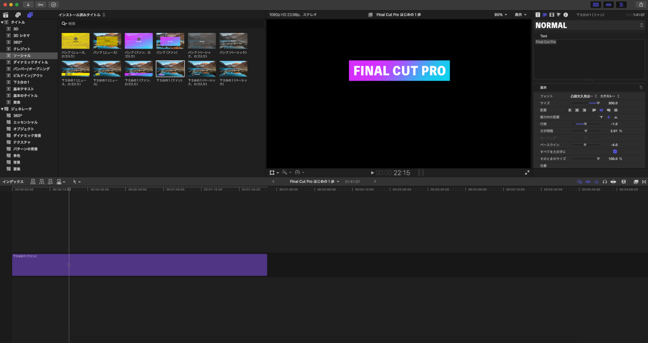 “Final Cut Pro”のカット編集やタイトル追加など、とても分かり易い内容でした。色々な学びがありましたので以下に記載します。